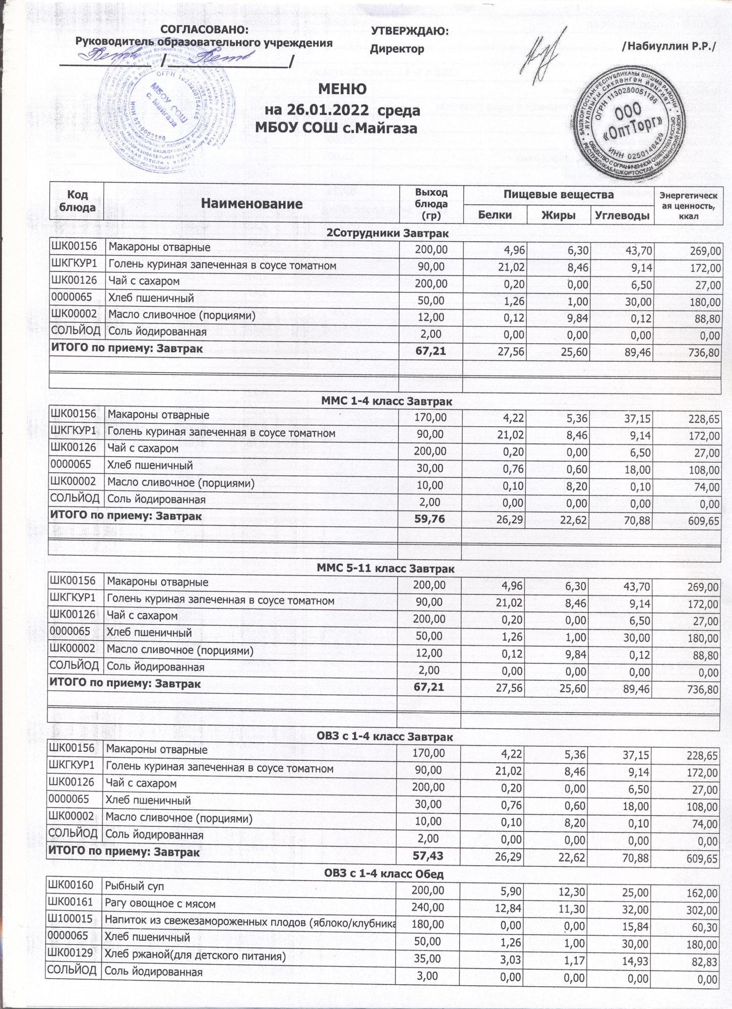 Меню январь 2026